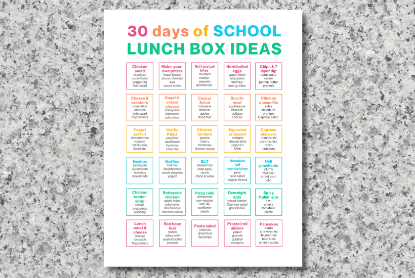 30 days of school lunch box ideas for kids